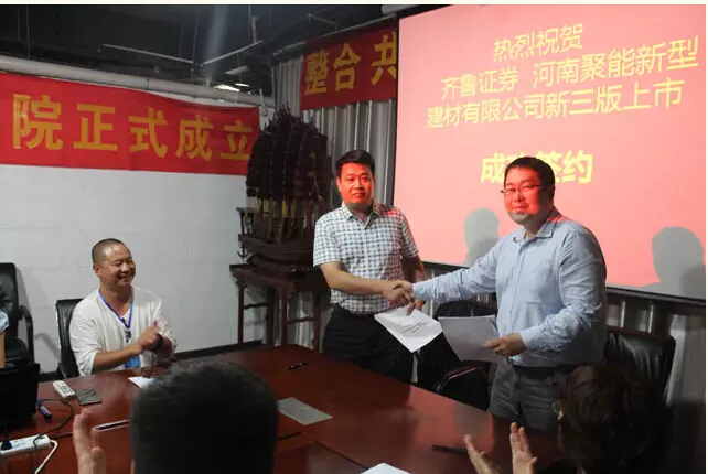 2015年8月1日,經(jīng)過前期的考察、調(diào)研,河南聚能新型建材有限公司與齊魯證券正式簽署合作協(xié)議,這標(biāo)志著聚能集團“新三板”掛牌上市工作正式啟動。